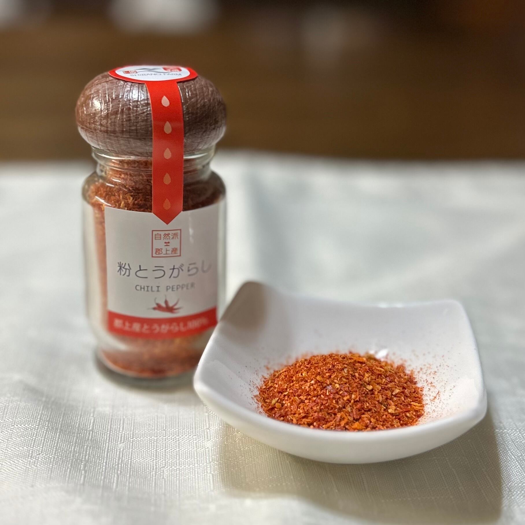 「お値段以上に辛い」のキャッチコピーの粉とうがらしは、飛騨・美濃の伝統野菜のひとつである、あじめこしょう100%使用しております。